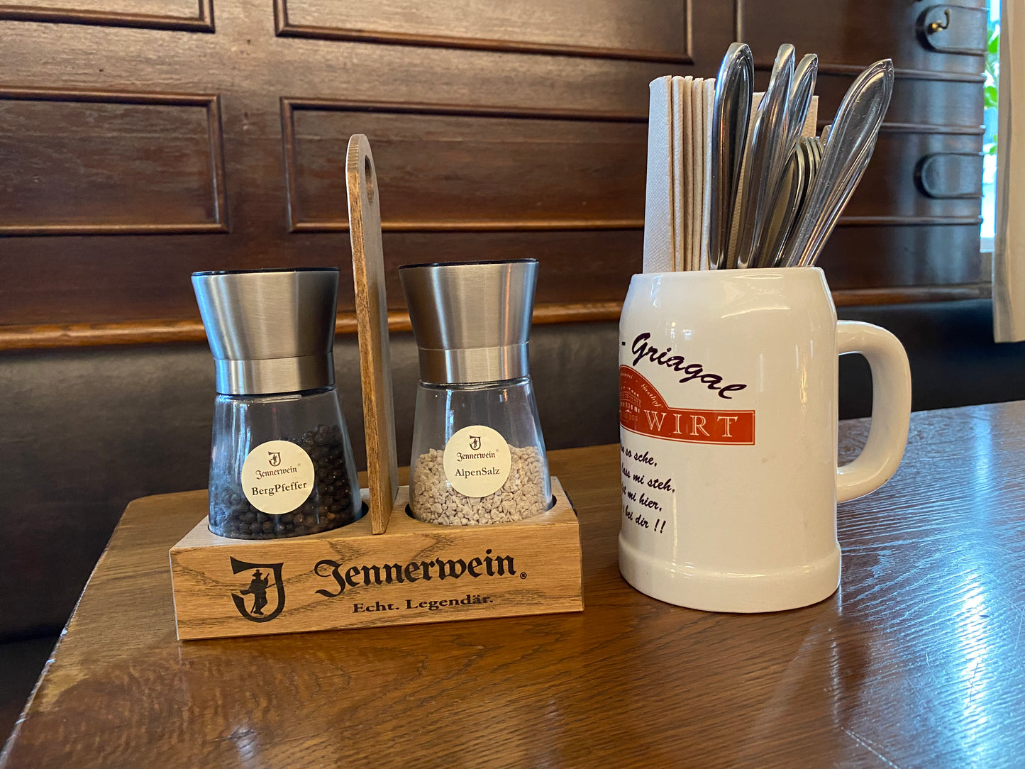 ...Fisch, Steaks, Pasta, Salate, zum Nachwürzen am Tisch.