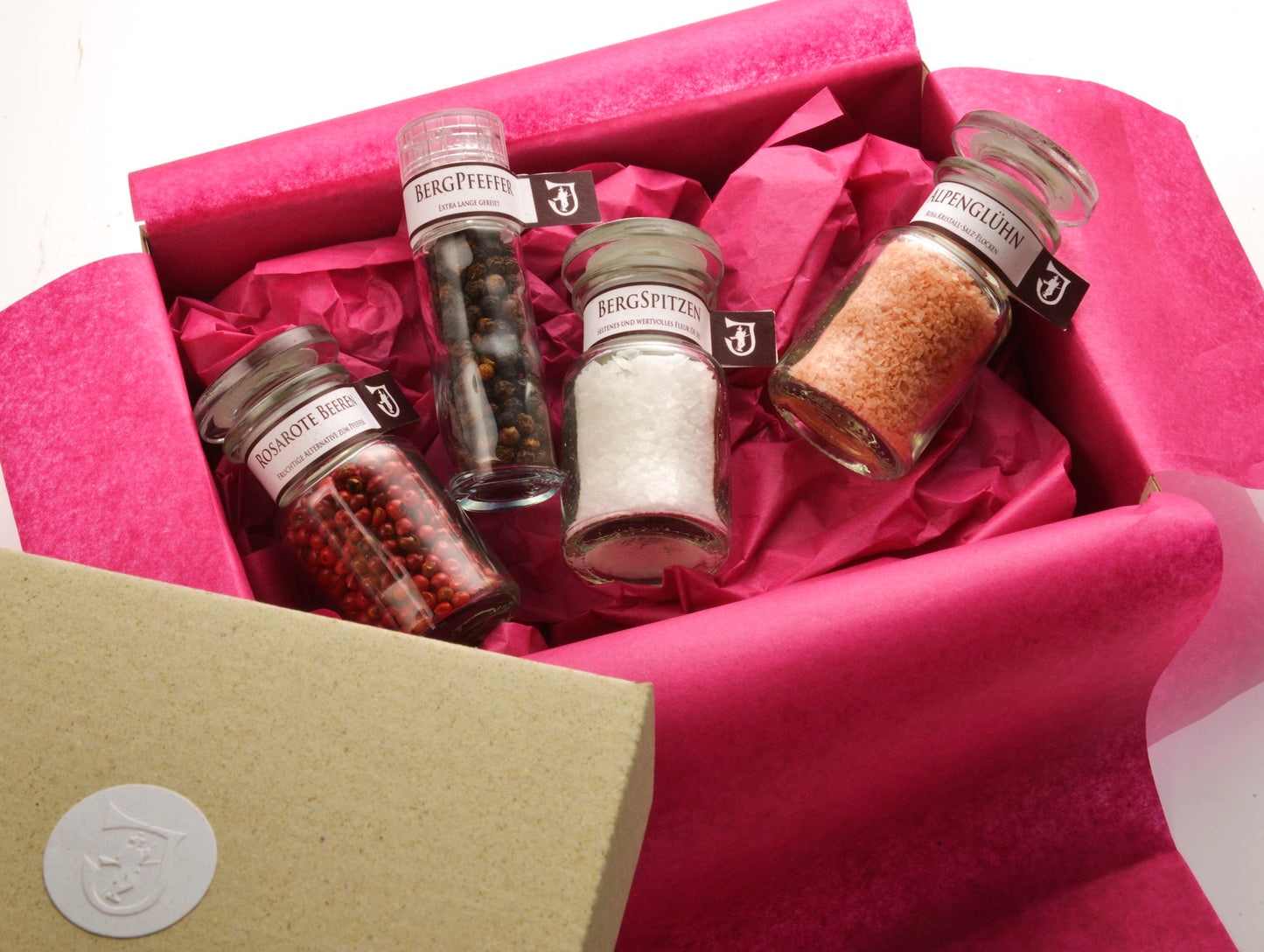 Unser „Alpenglühn“ ist ein perfektes Fingersalz zum Nachsalzen am Tisch. Aber auch für Steaks, Salate, Fisch und Meeresfrüchte sind die sie perfekt geeignet.